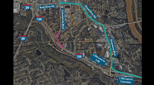SCDOT conducting closures of I-126 West off-ramp to Colonial Life Boulevard